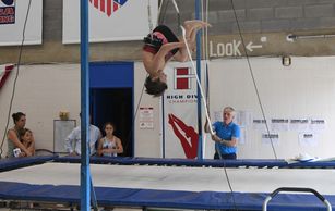 A spotting belt and rig are always utilized for this training. Divers perfect their diving movements and learn new dives in this highly repetitious training. Diving improvements are made faster and easier without the fear of painful landings.